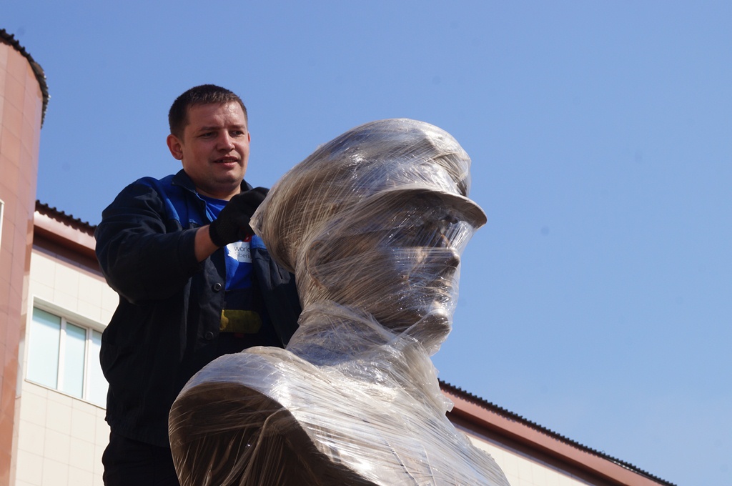 Ровно в 13.00 начался один из последних этапов работы реставраторов – на улицу начали выкатывать самолет ИЛ-10, чтобы присоединить к нему крылья. После этого ИЛ-10 гордо замрет на площадке перед колледжем, где несколькими часами раньше уже свершилось еще одно исторически важное действо. Еще в утренние часы 13 апреля на площадке перед колледжем, которая находится параллельно улице Станционной, величаво замерли бюсты героев Великой Отечественной войны - маршалов: Жукова Г.К., Рокоссовского К.К. и летчика Талалихина В.В.