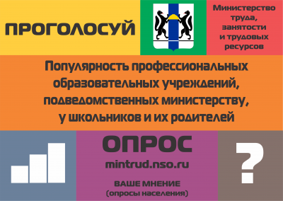 В специально созданном разделе «Ваше мнение» на главной странице официального сайта представлен опрос «Популярность профессиональных образовательных учреждений, подведомственных министерству, у школьников и их родителей» .