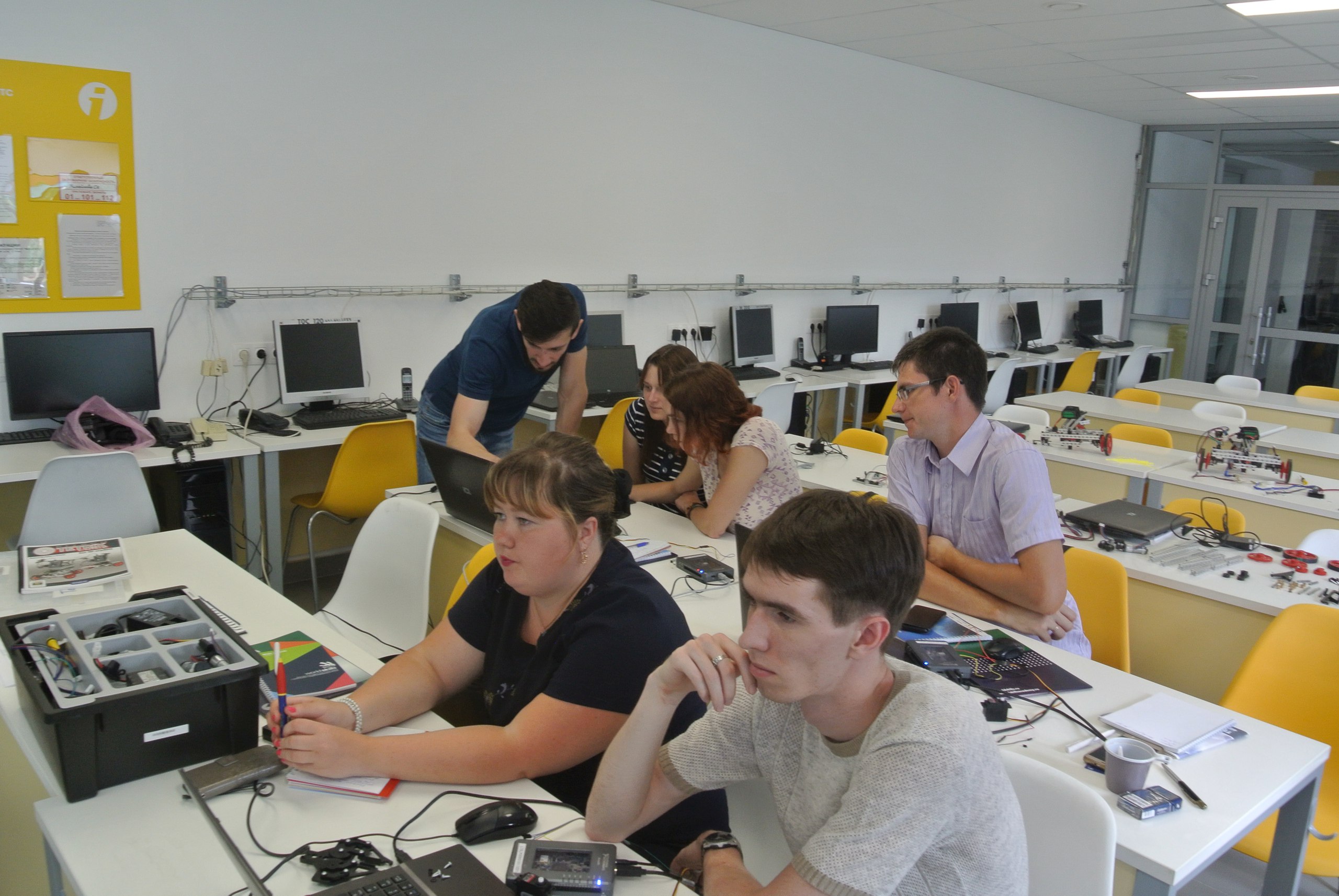 Первый день в замечательном городе, столице республики Татарстан - Казани прошел в свободном режиме, а это значит, было некоторое количество свободного времени - вперед гулять!!!! Архитектура в Казани такова, что хотелось гулять и смотреть, гулять и смотреть..., но, к сожалению, пошёл проливной дождь, и прогулку пришлось завершить. А уже на следующий день ждали великие дела - первый день обучения по программе «Практика и методика подготовки кадров с учетом стандарта Ворлдскиллс Россия»! Но Анатолий Михайлович в восторге: «Будем впитывать новые знания! Первый день обучения в разгаре! Обучающиеся со всей России! Здесь и Москва, и Санкт Петербург, и Ростов, и Курск! И все увлечены изучением азов мобильной робототехники! Скоро мы "захватим" эту компетенцию!))))) а пока - учимся, вникаем, собираем мобильных роботов!»