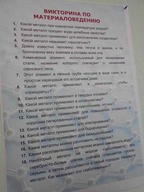 Вот и подошла к концу предметная неделя по дисциплине «Материаловедение».