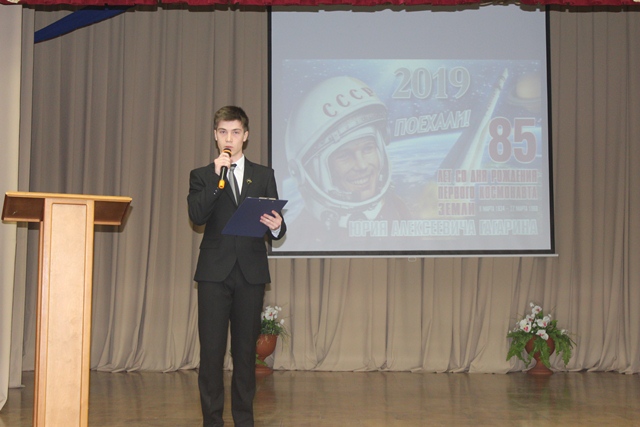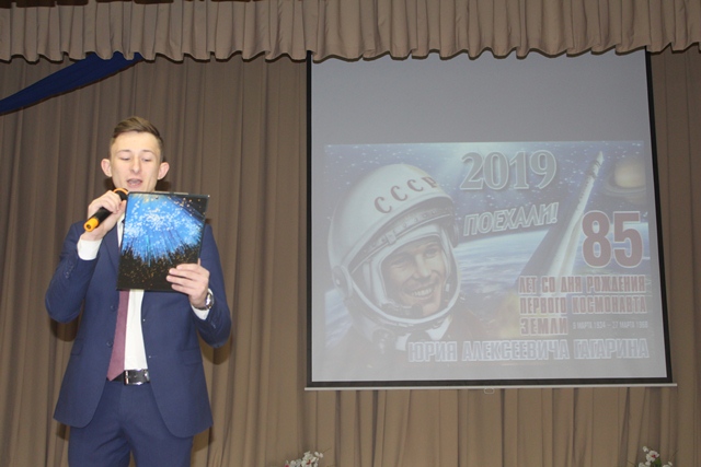 Начался урок с документального фильма, посвященного Ю.А.Гагарину. А потом ребята рассказали о тех, чьи имена золотыми буквами вписаны в историю космонавтики, об «отце русской космонавтики» Константине Эдуардовиче Циолковском, о генеральном конструкторе и изобретателе первых советских космических кораблей Сергее Павловиче Королеве, о первом отряде советских космонавтов. Победитель «Покрышкинских чтений-2019» студент первого курса Михаил Белов рассказал ребятам о Герое Советского Союза Михаиле Петровиче Девятаеве, о том, как ему удалось бежать из немецкого плена, захватив вражеский бомбардировщик, в котором находилась сверхсекретная документация к деталям еще неизвестной в мире ракеты.