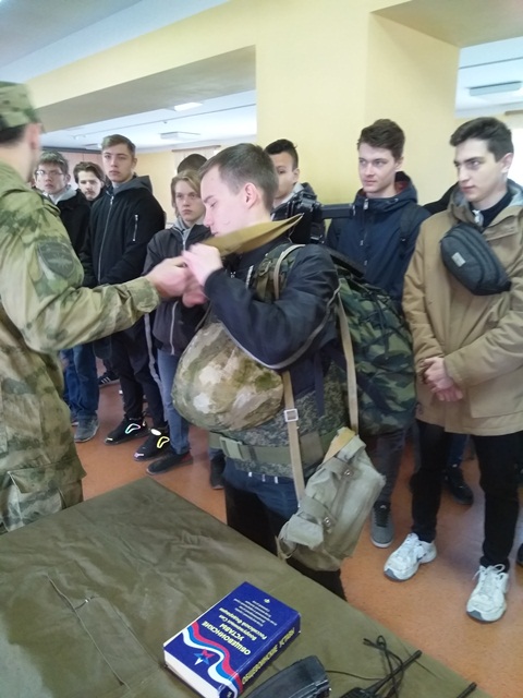 Наши студенты познакомились с организацией и правилами несения внутренней службы в подразделении, со всеми видами помещений роты. Узнали, что такое бытовая комната, комната досуга, канцелярия и т.д. Ознакомились с правилами несения службы нарядов в автопарке, КПП. Примерили экипировку и вооружение воина-связиста. Посмотрели средствами связи, которые используются в армии, несколькими моделями передвижных радиостанций, увидели рабочее место воина-связиста, ознакомились с порядком и последовательностью развёртывания передвижной радиостанции. Вспомнили последовательность неполной разборки и сборки автомата АК-74. Так что в течение этих дней наши студенты узнали много нового и интересного. Хотя погода была очень холодной и ветреной, но, как говорится: «Военнослужащий должен стойко переносить все тяготы и лишения воинской службы». Сборы прошли успешно, а все полученные студентами знания надолго останутся в памяти и помогут им в дальнейшей службе в вооружённых силах Российской Федерации.