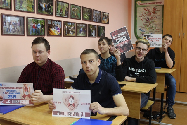 На этих уроках преподаватель биологии Анна Витальевна Степанова рассказала об особенностях и симптомах этого заболевания, о способах заражения ВИФ-инфекцией, о современных способах диагностики и необходимых обследованиях. Студентам был продемонстрирован видеоролик «Простые правила против СПИДА». Обсуждая просмотренный ролик, студенты пришли к выводу, что своевременное выявление вируса дает возможность бороться за качество жизни каждого отдельно взятого человека.