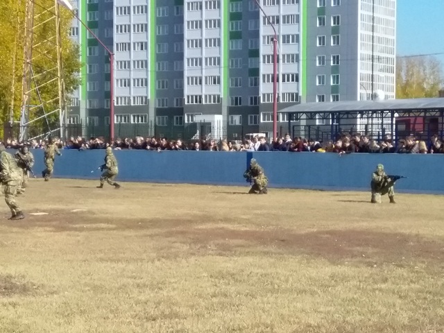 На второй площадке проводились показательные выступления подразделений специального назначения вооружённых сил, войск национальной гвардии, клубов военно патриотического воспитания.