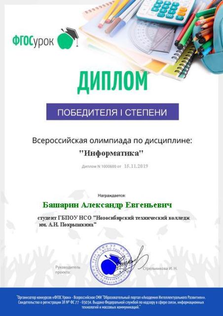 Студенты 2,3,4 курсов приняли участие во Всероссийской олимпиаде по различным дисциплинам: математика, информатика, теоретические основы информатики, русский язык, английский язык, общие основы технологии металлообработки и работ на металлорежущих станках. Организатором онлайн -олимпиад выступил Всероссийский портал дистанционных проектов «ФГОС Урок» СМИ ЭЛ № ФС 77 – 70640.