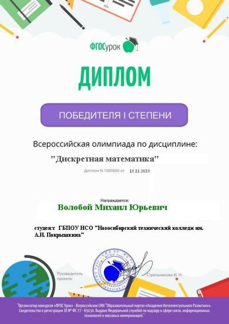 ТГ 491 Перков Иван (дискретная математика)- дипломом II
