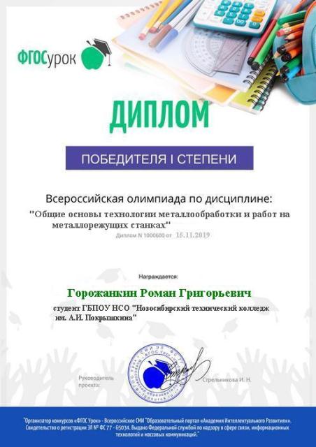 Горожанин Роман (общие основы технологии металлообработки и работ на металлорежущих станках)- дипломом I