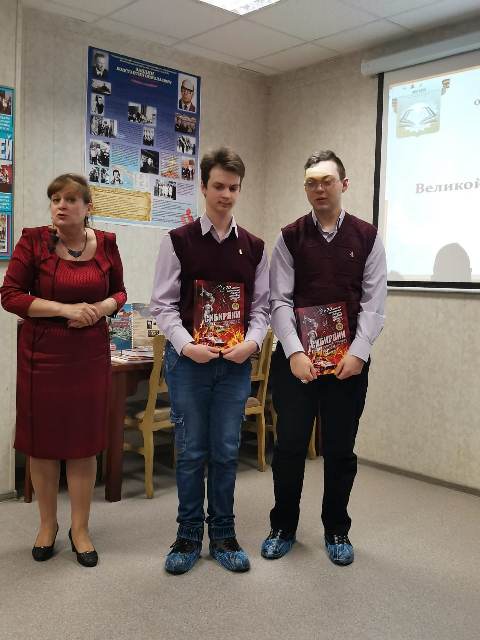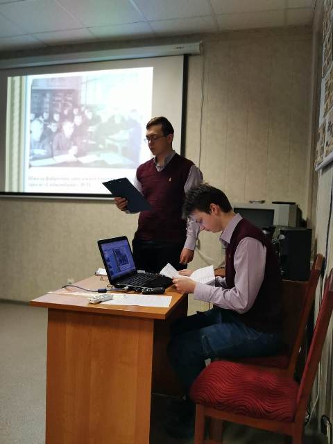 Мероприятие проводилось в музее профессионального образования Новосибирской области. Участниками урока стали обучающиеся подведомственных образовательных учреждений – активисты, участники органов студенческого самоуправления, педагогические работники, ветераны. Наш колледж на этом мероприятии представляли студенты групп Э-221 и К-141: Будаев Даниил, Никитин Алексей, Котенко Юлия и Сальникова Ксения. Ребята выступили перед собравшимися с докладом «Новосибирский технический колледж им. А.И.Покрышкина в годы Великой Отечественной войны». Кроме презентации, которую приготовили наши студенты к докладу, они еще продемонстрировали участникам урока отрывок из фильма о работе девушек-инструментальщиц, которые выпускали продукцию для фронта в мастерских нашего колледжа. Фильм был снят по воспоминаниям ветерана колледжа Полины Сергеевны Бирюковой. А играли в этом фильме сегодняшние студентки колледжа, они тоже присутствовали на музейном уроке. За активное участие в проведении этого мероприятия наши ребята были награждены книгами о Великой Отечественной войне.