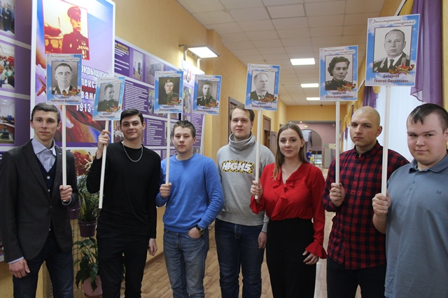 Многие студенты и сотрудники нашего колледжа ежегодно принимают участие в шествии «Бессмертного полка» 9 мая. Собирались пойти и в этом году, но жизнь продиктовала иные условия, и этой памятной, ставшей уже привычной для многих из нас, акции не состоится. Вернее, «Бессмертный полк» прошагает по всей стране, но несколько в непривычном для нас формате – без нашего явного участия. Где-то фотографии фронтовиков будут вывешены на окнах домов, в каких-то городах – закреплены на стенах предприятий и учебных заведений. Кто-то оформит свою страницу в социальных сетях, посвятив ее своим дедам и прадедам на время празднования 75-летия Великой Победы. В общем, каждый, кто захочет принять участие в акции «Бессмертный полк», сделает это таким образом, каким подскажет ему неравнодушное сердце. Мы решили разместить фотографии фронтовиков нашего колледжа здесь, еще раз вспомнив о них, о том, какой вклад каждый из них внес в общее дело Великой Победы!