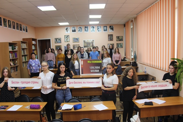 В библиотеке колледжа Татьяна Юрьевна Анцыферова провела Уроки памяти «Терроризм: как не стать его жертвой», посвященный Дню солидарности в борьбе с терроризмом. В ходе мероприятия студенты групп ЭГ-31, МР-231 и М-351 дали определение понятию «Терроризм» и вспомнили правила поведения при террористической угрозе. Ребята посмотрели и обсудили документальный фильм «52 часа | Беслан 15». Для группы К-241 Урок памяти провели Елена Владимировна Степанова и Ольга Александровна Румянцева. Студентки посмотрели документальный фильм, посвященный трагическим событиям в школе Беслана, в котором поминутно воссоздана картина Бесланского теракта.