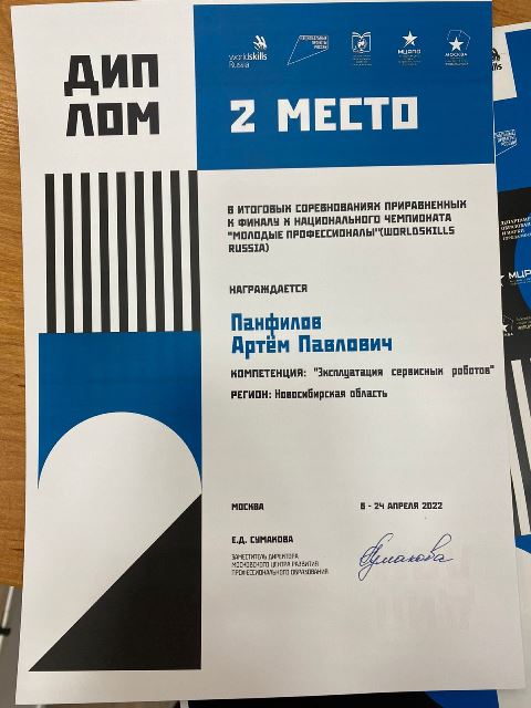 в компетенции «Эксплуатация сервисных роботов»,