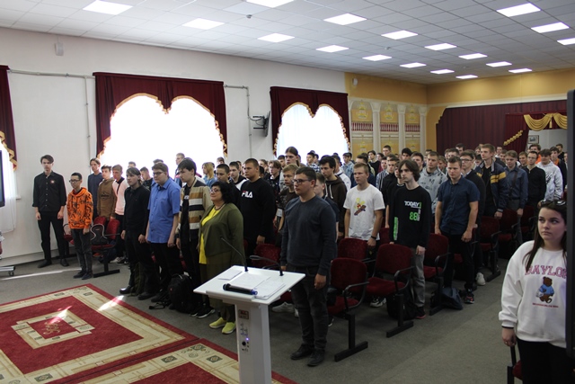 В актовом зале колледжа это первое мероприятие из цикла «Разговоры о важном провели для студентов 1 курса заместитель директора по УВР Елена Владимировна Степанова, представители студсовета и кураторы групп.