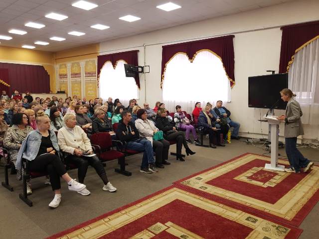 Первая часть собрания проводилась в актовом зале, где заведующая учебной частью Тинина Алиса Олеговна рассказала о плане учебной и воспитательной работы на ближайшее время, перспективах студенческой жизни, представила родителям кураторов групп.