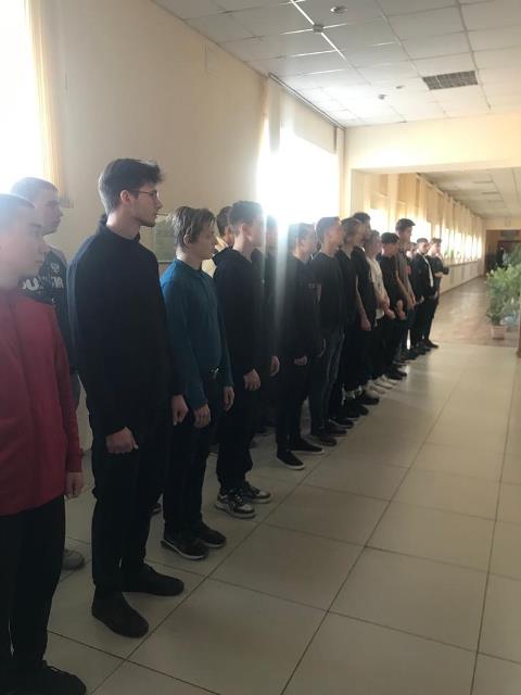 Перед началом «Разговоров о важном» студенты всего колледжа выстроились на линейку, посвященную вносу Государственного Флага Российской Федерации и исполнению Гимна России.