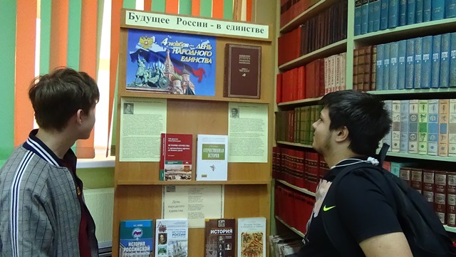 В читальном зале библиотеки колледжа организована книжно-иллюстративная выставка «Будущее России – в единстве», где представлены материалы по истории России.