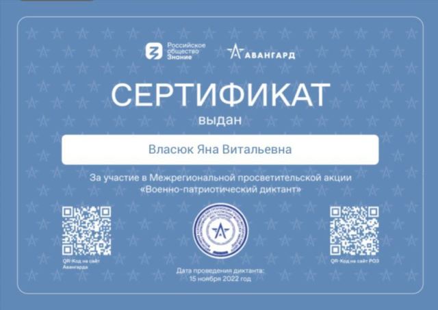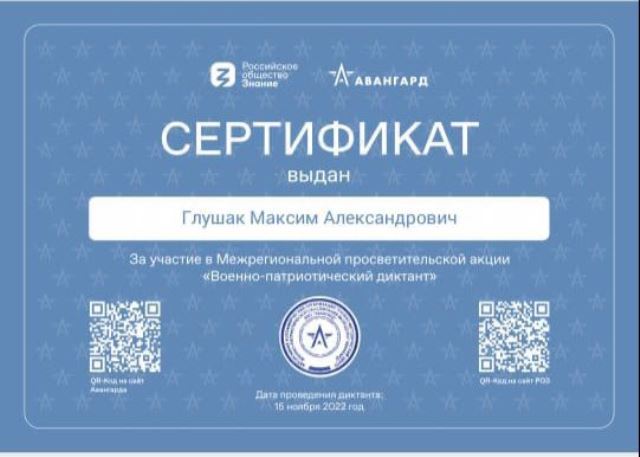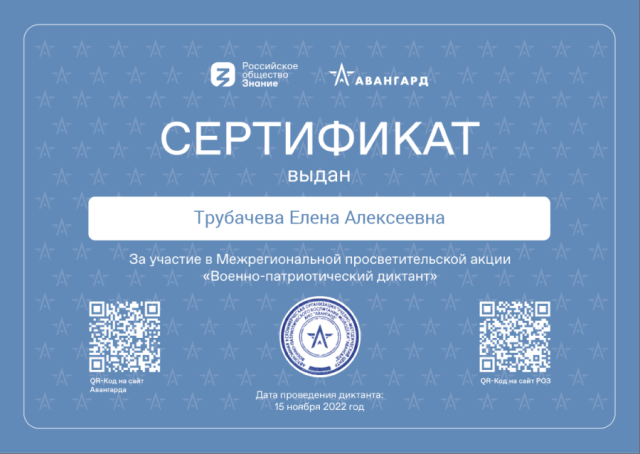АНО «Учебно-методический центр военно-патриотического воспитания молодежи «Авангард» при поддержке Министерства обороны Российской Федерации в рамках Всероссийского дня призывника 15.11.2022 проводил межрегиональную просветительскую акцию «Военно-патриотический диктант».