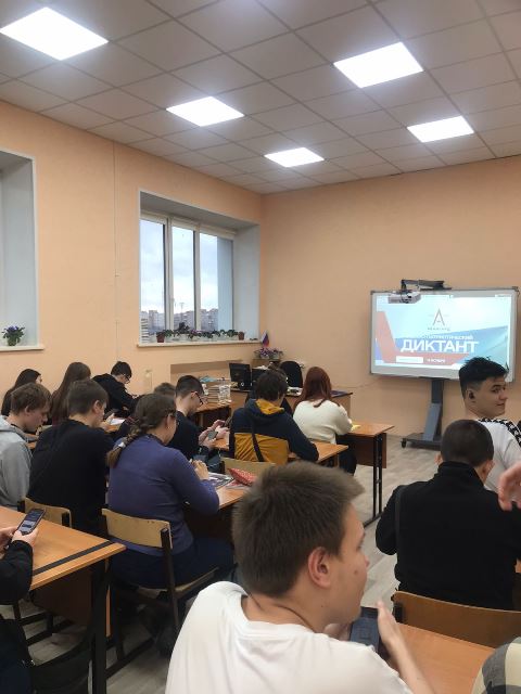 Диктант проводился в целях гражданско-патриотического воспитания молодежи, формирования у них ответственности перед государством и сопричастности к важнейшим историческим событиям нашей страны. Студенты групп колледжа: АТ-281, МР-231, Т-271, РП-261, К-341 и другие под руководством преподавателей истории: Елены Алексеевны Трубачевой и Павла Игоревича Ледака приняли участие в этой акции.