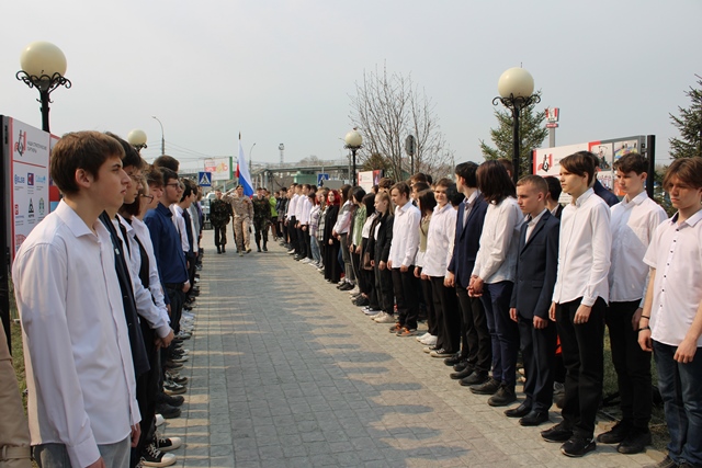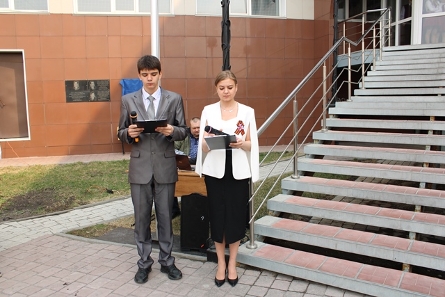 Митинг, посвященный торжественному открытию мемориальных досок Константина Федоровича Волончука и Владимира Власовича Богульского, начался с вноса Государственного Флага Российской Федерации участниками проекта «Знаменная группа» и исполнением Государственного Гимна РФ.