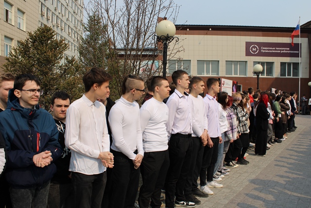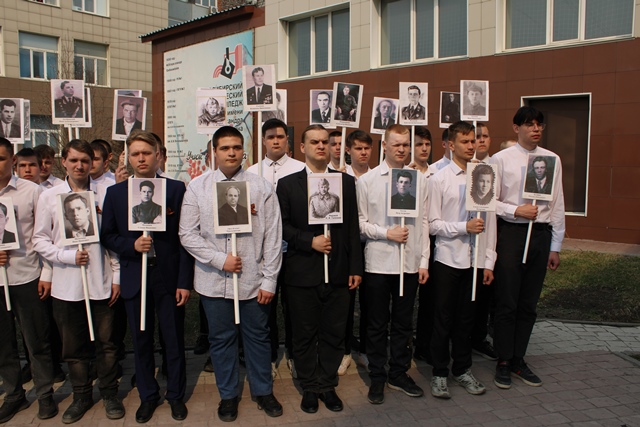 На церемонии открытия присутствовали: заместитель главы администрации Ленинского района Анжела Валерьевна Данилова, председательсоветаветеранов Ленинского района г. Новосибирска Александр Иванович Куккус; консультант отдела профессионального образования управления профессионального образования и подготовки трудовых ресурсов министерства образования Новосибирской области Екатерина Евгеньевна Головина, бывший директор Профессионального училища №2 им. А.И.Покрышкина Василий Николаевич Коновалов, ветеран профтехобразования, инициатор создания музея А.И.Покрышкина Евгений Михайлович Попов, выпускник нашего колледжа 1992 года, неоднократный призер соревнований по боксу памяти В.В. Богульского, кандидат в мастера спорта Мендоров Дмитрий Валерьевич, а также ветераны профтехобразования, педагогические работники, представители профессиональных образовательных учреждений Новосибирской области, студенты. На центральной аллее колледжа выстроились студенты групп первого и второго курса, студенты групп: С-211 и СВ-214 с фотографиями «Бессмертного полка»: участников и погибших на полях сражений Великой Отечественной войны, Афганской войны – выпускников и педагогов нашего учебного заведения.