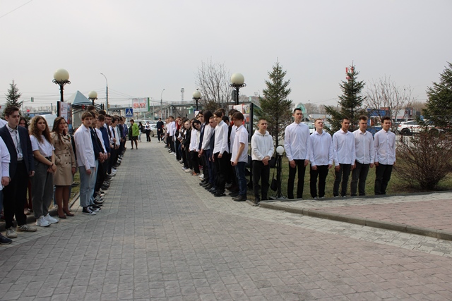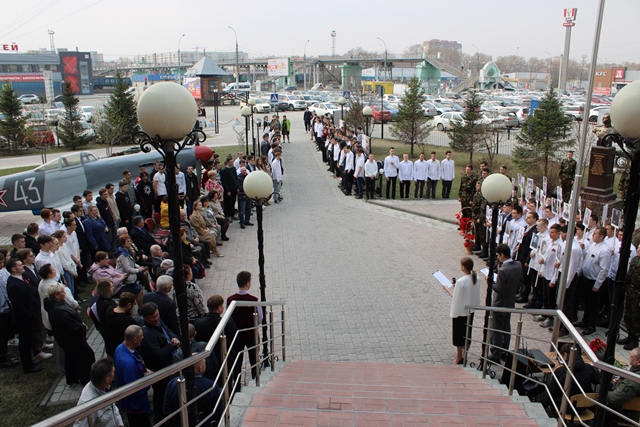 Представители «Знаменной группы» и театральной студии колледжа, а также ветераны и почетные гости возложили цветы к мемориальным доскам Константина Федоровича Волончука и Владимира Власовича Богульского, к бюстам А.И.Покрышкина, маршалов: Г. К. Жукова и К. К.Рокоссовского и летчика Талалихина в мемориально-историческом парке «Патриот». А вокальный ансамбль «Полет» исполнил песню «Вставай страна».