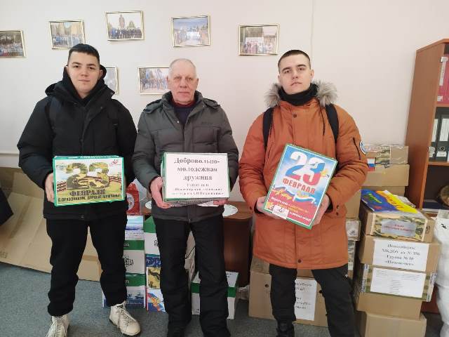 Студенты и преподаватели колледжа собрали посылки бойцам, находящимся на передовой: сладкие подарки, футболки, носки, теплое белье, перчатки, и, конечно же, поздравления с Днем Защитника Отечества, пожелания скорейшей победы, которые ребята написали в письмах. Восьмой раз уже отправляют посылки студенты колледжа бойцам, находящимся в зоне СВО. И недавно на имя директора колледжа Талюкиной Г.Ф. пришло сообщение о том , что посылки, отправленные нашими студентами, получены. Особенную благодарность бойцы передают ребятам за печки-буржуйки, которые собрали и сварили сварщики в мастерских нашего колледжа. Среди наших студентов есть ребята, которые вместе с родителями работают на складе фонда «К Победе вместе!» по упаковке, погрузке, и отправке фур в зону СВО: Богдан Егошин ( гр. С-213) и Михаил Поликарпов (ПУ-101). А Фомина Анна (гр. К-142) вместе с другими волонтерами Новосибирска принимает участие в плетении маскировочных сетей.