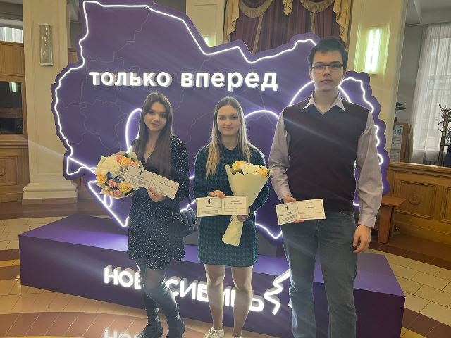 Среди тех, кому вручались удостоверения стипендиатов Правительства Новосибирской области, были студенты Новосибирского технического колледжа им. А.И. Покрышкина – участники театральной студии «33 кактуса» и агитбригады «Надежда»: Шипуль Егор, Бугай Виктория и Овсянникова Виктория.