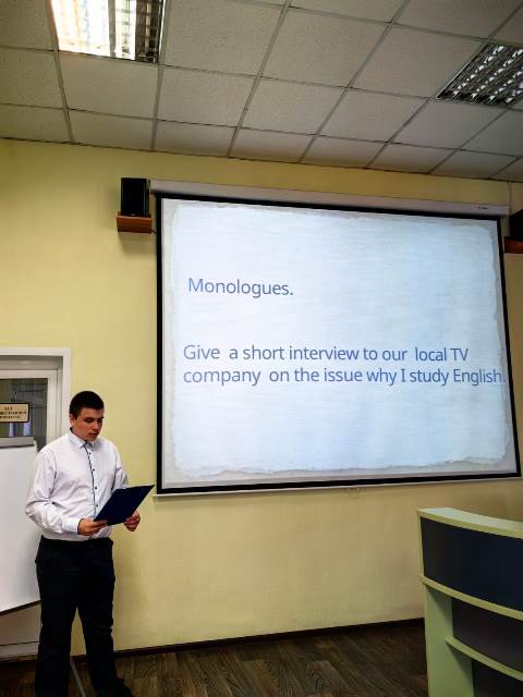 Во-первых, студенты изучили данные опроса, проведенного ранее по теме «Зачем я изучаю английский язык». Во-вторых, для большей эффективности, работа студентов была организована в мини-группах, где обучающиеся задавали вопросы, и составляли монолог по заданию: «Дайте небольшое интервью нашей местной телекомпании на тему, почему я учу английский язык». Ольга Андреевна отобрала клише, исходя из уровня подготовки обучающихся. Обязательное использование предложенных клише является еще одним важным условием для проведения урока-интервью.