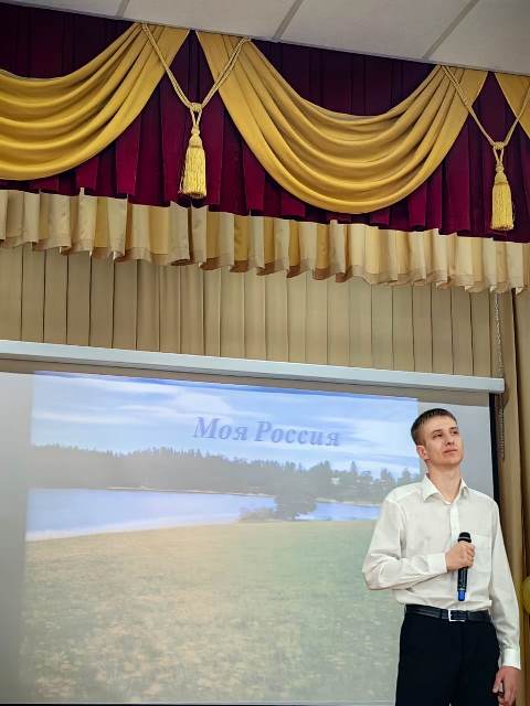 Кроме этого гости праздника услышали «Я живу в России» - песню о силе русского народа, о нашей огромной способности к преодолению трудностей и возрождению, которую исполнил Вербицких Кирилл, студент группы АТ-381.
