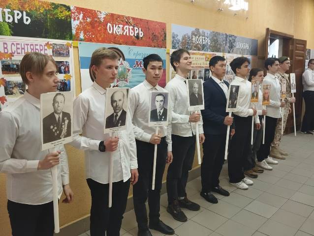 На торжественном концерте в актовом зале, который состоялся после открытия стелы прозвучали песни о Великой Отечественной войне в исполнении студентов нашего колледжа – участников театральной, вокальной и хореографической студий. Был показан фильм, снятый художественными коллективами нашего колледжа «Мы помним ваши имена» - о людях, которые были участниками и свидетелями Великой Отечественной и всю жизнь проработали в нашем учебном заведении. Во время исполнения песни «Бессмертный полк» «Знаменная группа» вместе с командиром Мироновым Георгием и руководителем Румянцевой Ольгой Александровной внесли портреты «Бессмертного полка» нашего колледжа.