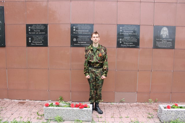 Право возложить цветы к бюстам героев Великой Отечественной войны и мемориальным доскам выпускников колледжа на Аллее Славы, было предоставлено участникам проекта «Знаменная группа».