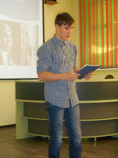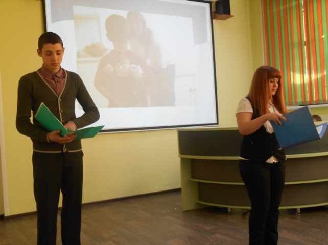 Сегодня в библиотеке техникума нашим пресс-центром было организовано и проведено мероприятие, посвящённое этому празднику, на котором присутствовали студенты первого курса. Ведущие Карина Емец (К-141) и Алексей Цукарь (С-111) рассказали об истории праздника, о его значимости для каждого человека. В читальном зале царила теплота, душевная и доброжелательная атмосфера. Гости услышали много прекрасных стихотворений о матери, отрывки из рассказов, посмотрели видеоролики, послушали песни. Каждый номер первокурсники встречали громкими аплодисментами. Но наибольший восторг вызвали у всех выступления Вадима Яковлева (К-141), который с особым трепетом прочитал стихотворение «О, мама, мама…», Екатерины Завгородней (К-241), прочитавшей стихотворение собственного сочинения, Василия Черникова (ЭГ-11), который спел песню «Мама».