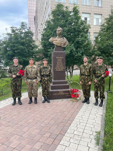 Право возложить цветы к бюстам героев Великой Отечественной войны и мемориальным доскам выпускников колледжа на Аллее Славы, было предоставлено участникам проекта «Знаменная группа».
