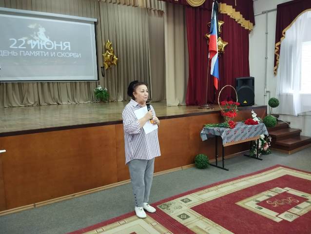 Сегодня, какие бы мы песни не пели, какие бы стихи не читали, мы все время будем думать о тех, кто сегодня с оружием в руках стоит на защите нашей Родины, кто продолжает дело своих отцов и дедов - бьется с фашизмом сегодня. Мы желаем нашим бойцам, которые находятся не передовой, только победы и живыми вернуться домой. И как сказал Юрий Левитан 22 июня 1941 года: «Наше дело правое, враг будет разбит, победа будет за нами. Завершилось мероприятие исполнением песни «Поклонимся великим тем годам!»