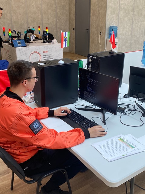Александр, студент 3 курса, выступает в одной из самых сложных и перспективных компетенций — «Специалист по коллаборативной промышленной робототехнике с применением инструментов искусственного интеллекта». Прямо сейчас он и другие конкурсанты приступили к выполнению первого конкурсного задания, которое предполагает программирование коллаборативных роботов и настройку систем искусственного интеллекта для решения практических производственных задач.
