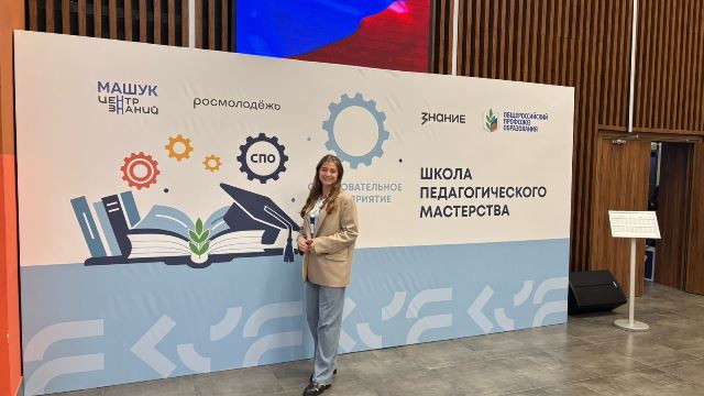 С 21 по 24 сентября заведующая учебно-методическим центром Симакова Ангелина Олеговна приняла участие в образовательном мероприятии «Школа педагогического мастерства», организованном Общероссийским Профсоюзом образования совместно с Автономной некоммерческой организацией «Центр знаний «Машук» по теме «Современные тренды и подходы в преподавании учебных дисциплин». Школа педагогического мастерства объединила 200 педагогов СПО из 56 регионов России в очном формате и 1000 педагогов онлайн.