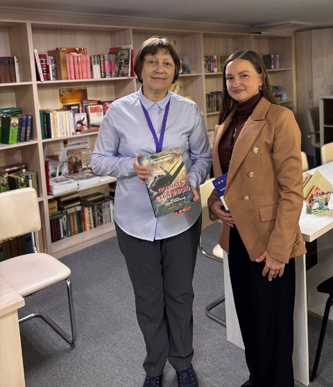 От нашего колледжа в дар библиотеке Всероссийского учебно-тренировочного центра профессионального мастерства «Смена» Ольга Андреевна Погребняк передала книгу «Познать себя в бою. Асы в небе Великой Отечественной» про Александра Ивановича Покрышкина в с дарственной подписью директора колледжа Галины Федоровны Талюкиной. Заведующая библиотекой управления образования Тюрина Галина Владимировна поблагодарила за подарок и сказала о том, что эта книга дополнит выставку об Александре Ивановиче в библиотеке центра «Смена».