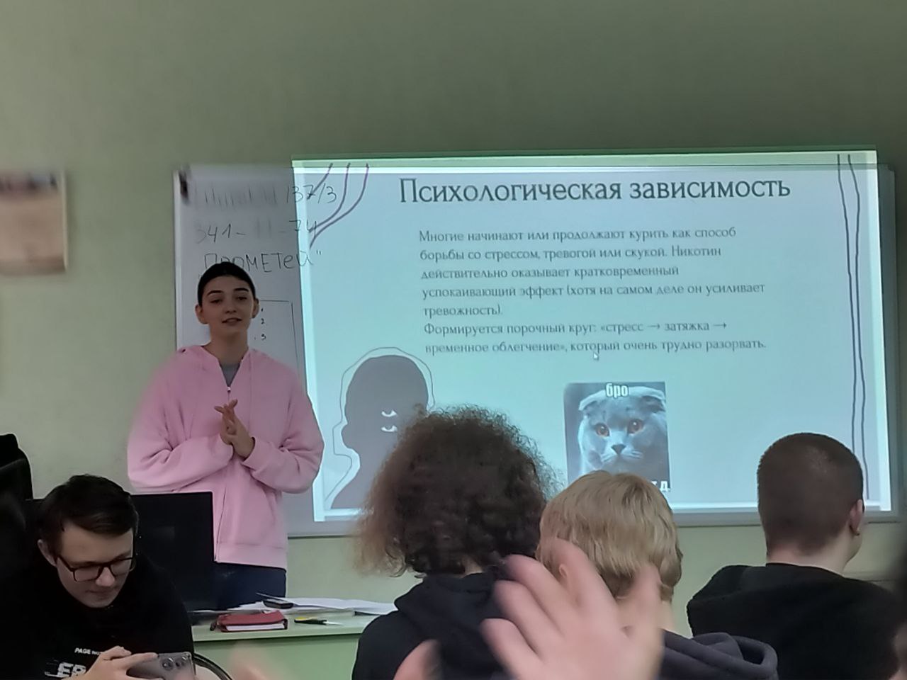 Ребята не просто слушали лекцию, а сами в процессе игры рассказывали и аргументировали, почему так опасна зависимость от вейпов. В аудитории было шумно и интересно, все были включены в процесс.