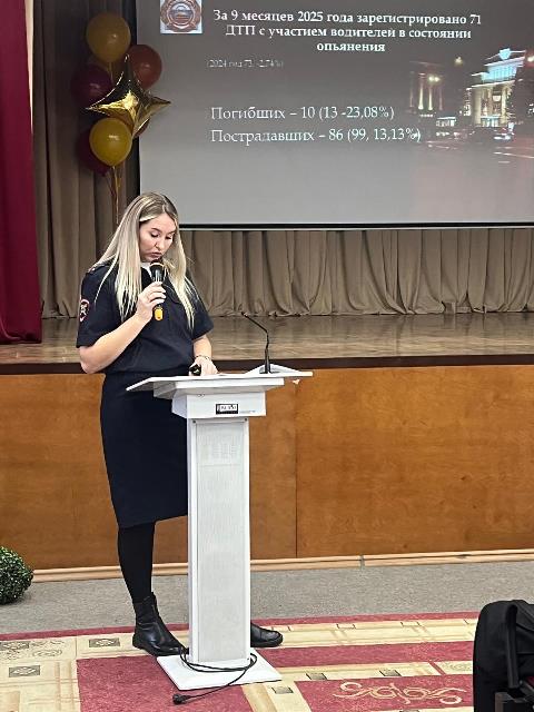 6 ноября в рамках проекта по правовому воспитанию «Гражданином быть обязан!» с целью профилактики дорожно-транспортных происшествий и воспитания правовой культуры в актовом зале колледжа состоялась встреча студентов с инспектором отделения пропаганды БДД УМВД России по г. Новосибирску капитаном полиции Тейхреб Анастасией Юрьевной.