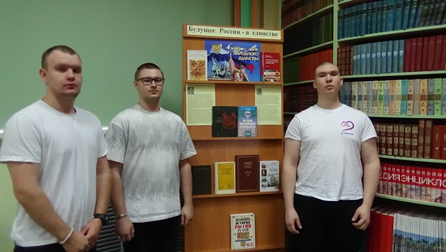 Весь период в рамках недели в библиотеке колледжа была представлена выставка литературы «Будущее России – в единстве!» Ребята приходили в свободное время и знакомились с литературными источниками, интересовались и задавали вопросы библиотекарю Анцыферовой Татьяне Юрьевне.