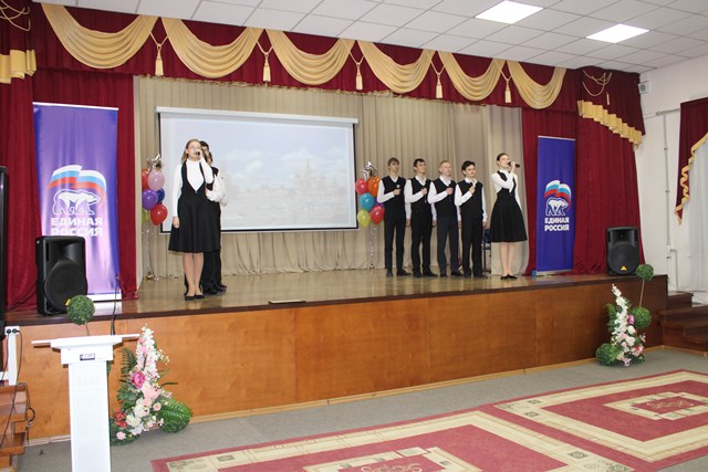 После исполнения Гимна РФ перед собравшимися в зале выступил студенческий ансамбль, исполнивший две зажигательные песни.