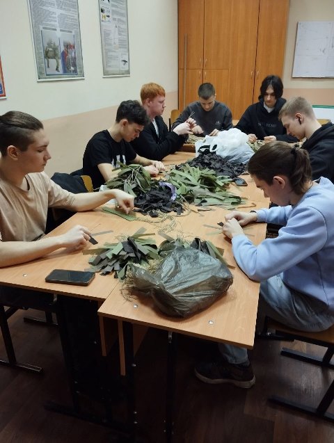 В январе наступившего года сотрудничество обрело более широкий формат. Теперь студенты группы СВ-214 и группы С-212 под руководством Ольги Александровны Румянцевой и Ларисы Викторовны Казанцевой в колледже начали вязать «паучки» - основу, которую затем на точке Z волонтеры вплетают в сетевое полотно, чтобы получить маскировочную сеть. Работа кропотливая, требующая концентрации внимания, ответственности, но парни справляются и успевают в установленный срок.