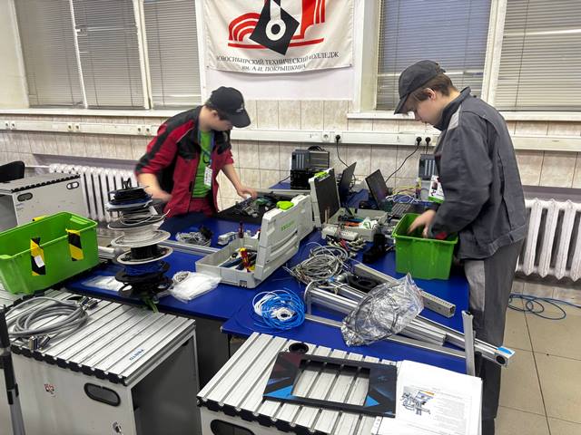 28 января на конкурсной площадке в Новосибирском техническом колледже им. А. И. Покрышкина работают участники компетенции «Мехатроника».