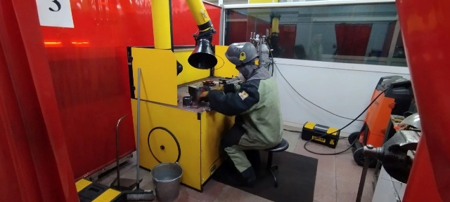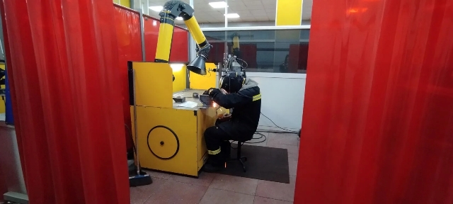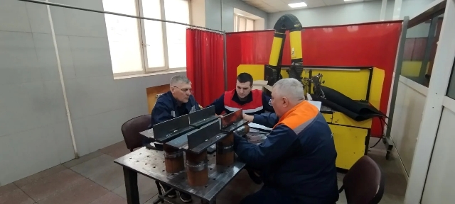 Это второй день выполнения конкурсного задания, участники продолжают выполнять модуль Б – конструкция, работающая под давлением из углеродистой стали, выполненная РД. После окончания сварочных работ образцы будут проверены визуально-измерительным контролем, и подвергнуты гидравлическим испытаниям под давлением 10 бар.