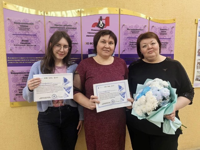 Педагоги Новосибирсого технического колледжа им. А. И. Покрышкина: Елена Анатольевна Мазная и Александра Андреевна Скоробогатова приняли участие в культурно-образовательном конкурсе «Воспитательное мероприятие» в рамках культурно-образовательного проекта работников государственных профессиональных образовательных учреждений Новосибирской области, членов профсоюзной организации «ГРАНИ УСПЕХА».