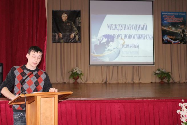 Сегодня в нашем техникуме прошла третья Областная студенческая научно-практическая конференция «Покрышкинские чтения». В ней приняли участие студенты техникумов Новосибирска и области. Тема конференции в этом году – «Город, рожденный летать».