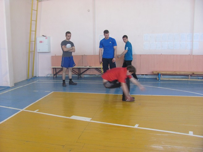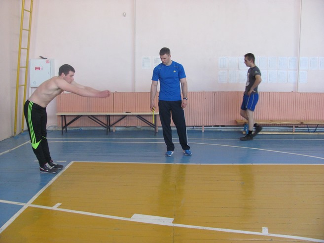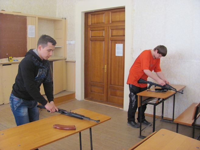 В среду, 23 апреля, проводилась сдача нормативов по физической подготовке, предусмотренных для призывников. Юноши сдавали нормативы по подтягиванию, прыжкам с места, бегу на 100 метров. После этого состоялись занятия по огневой подготовке - разборке и сборке автомата Калашникова (все успешно справились с выполнением данного норматива). Все показали хорошую стрельбу в лазерном тире из пистолета Макарова и автомата Калашникова. Были проведены также занятия по ЗОМП (защите от оружия массового поражения) с надеванием ОЗК (общевойскового защитного комплекта).