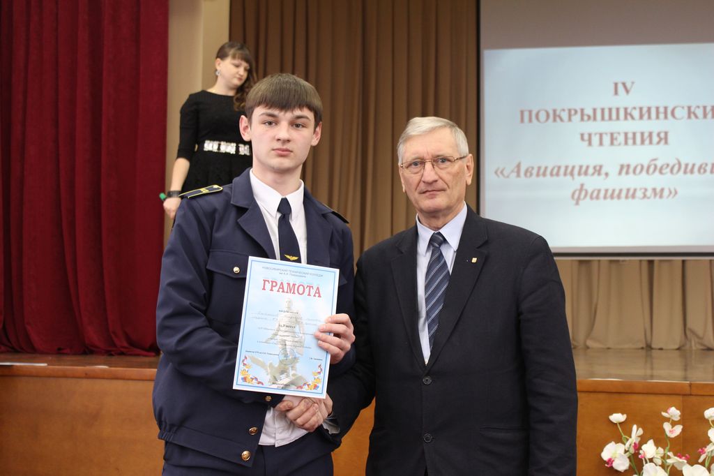 В Новосибирском техническом колледже им. А.И.Покрышкина прошла четвертая студенческая научно-практическая конференция «Покрышкинские чтения». По традиции конференция проходила в канун дня рождения прославленного летчика трижды Героя Советского Союза, маршала авиации Александра Ивановича Покрышкина. В конференции приняли участие студенты средних профессиональных учебных заведений и школьники Новосибирска и области. «Покрышкинские чтения» в этом году были посвящены 70-летию Великой Победы, и проходили под девизом – «Авиация, победившая фашизм!» Конференцию открыла директор колледжа Галина Фёдоровна Талюкина, она поприветствовала всех гостей и пожелала участникам успешного выступления. С приветственным словом к студентам и школьникам обратился председатель жюри - Шумилов Владимир Николаевич - кандидат исторических наук, доцент кафедры управления и социальных наук «Сибирского государственного университета геосистем и технологий». Работа конференции проходила по четырем секциям. Первая секция - «Прославленные летчики и летчицы страны » (достижения и подвиги военных летчиков в годы Великой Отечественной войны). Лучшей в этой секции была признана работа студента Татарского политехнического колледжа Черепанова Олега - «Этапы большого пути Г.Ф. Байдукова - знаменитого земляка, героя военной авиации». Вторая секция - «Стальные птицы» Великой Победы» (развитие военной авиации в годы Великой Отечественной войны). Первое место занял Котов Антон – студент Новосибирского технического колледжа им. А.И.Покрыышкина с работой «Модернизация самолетов – истребителей Як-9. Историческая реставрация». Третья секция - «Такая у нас работа – учить самолеты летать…» (военные конструкторы, достижения в области самолетостроения и тактики воздушных боев). Лучшей стала Анастасия Аверченко – студентка НТК им. А.И.Покрышкина , которая представила на суд слушателей гражданско-патриотический проект - «Мы помним ваши имена!» Четвертая секция «Первым делом – самолеты…» (история российской авиации). Первое место занял Планкин Святослав – студент НТК им. А.И.Покрышкина с докладом «Авиационные места Новосибирска». Участниками конференции была проделана огромная исследовательская и поисковая работа . Ребята с увлечением рассказывали слушателям о своих открытиях, которые они сделали изучая исторический материал. В каждом докладе чувствовалось желание сохранить память о подвиге нашего народа , совершенного в годы Великой Отечественной войны.