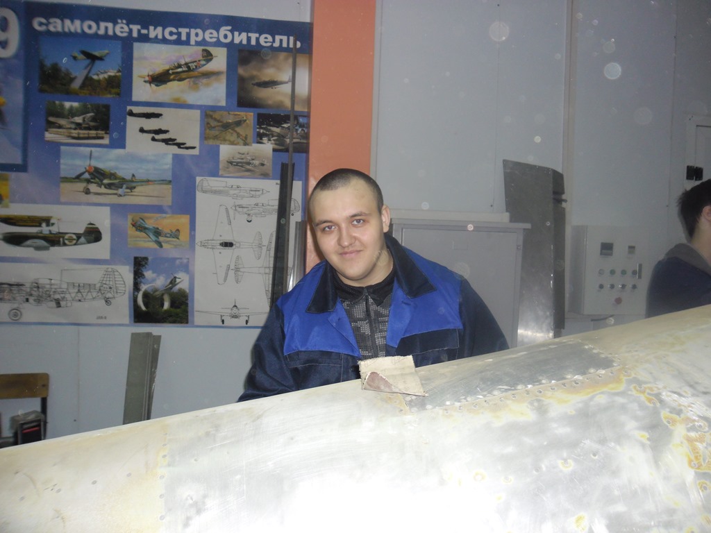 К середине следующей неделе все детали самолета должны просохнуть, сразу же можно будет выявить все неровности в шпатлевке и все зазоры между листами, которые сразу же будут шпатлевать. Первый слой закроет недоработки, а второй станет выравнивающим, основой для проведения покрасочных работ. Эта работа требует ювелирной точности, больших стараний и тщательного подхода. Безусловно, что все эти качества присущи каждому, кто задействован в реставрации ЯК-9. На данном этапе наряду со взрослыми в реставрационной мастерской трудятся студенты групп первого курса: М-151 и ТГ-191. А студенты: Котов Антон (Э-221) и Дементьев Денис (Э-321) проводят в мастерских все время, свободное от учебы, вкладывая в воссоздание самолета все силы.