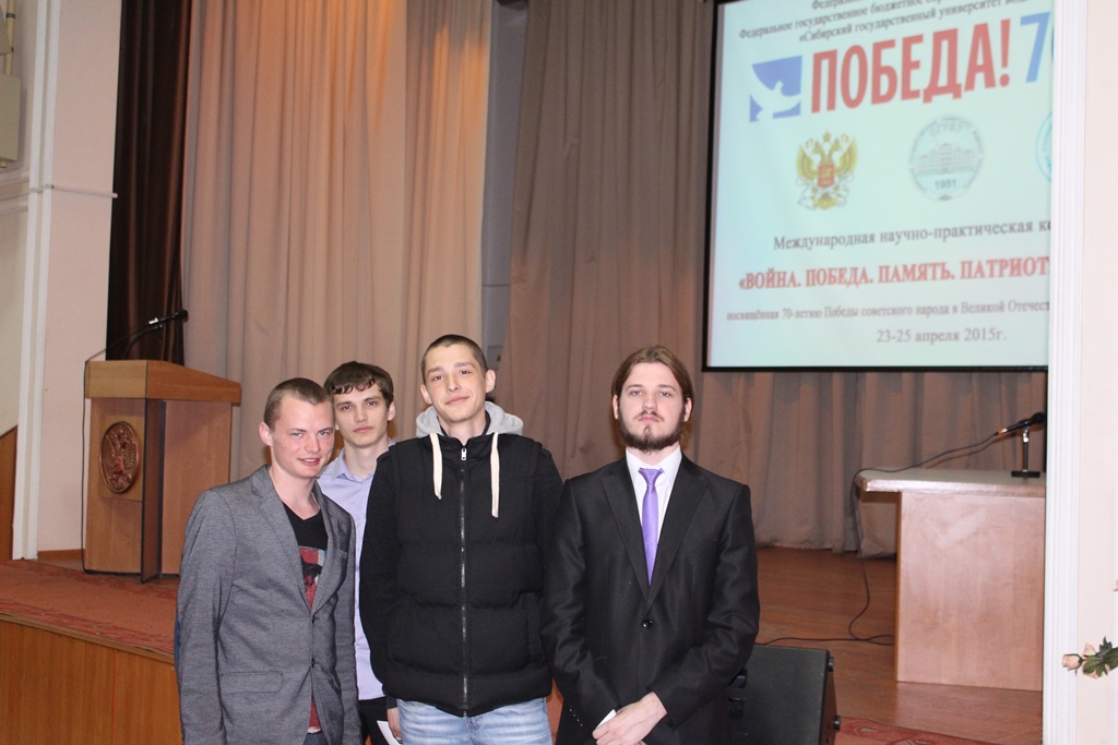 23-25 апреля 2015 года в Сибирском государственном университете водного транспорта состоялась Международная научно-практическая конференция «ВОЙНА. ПОБЕДА. ПАМЯТЬ. ПАТРИОТ: 1941 – 1945 гг.», посвящённая 70-летию Победы советского народа в Великой Отечественной войне 1941-1945 гг.