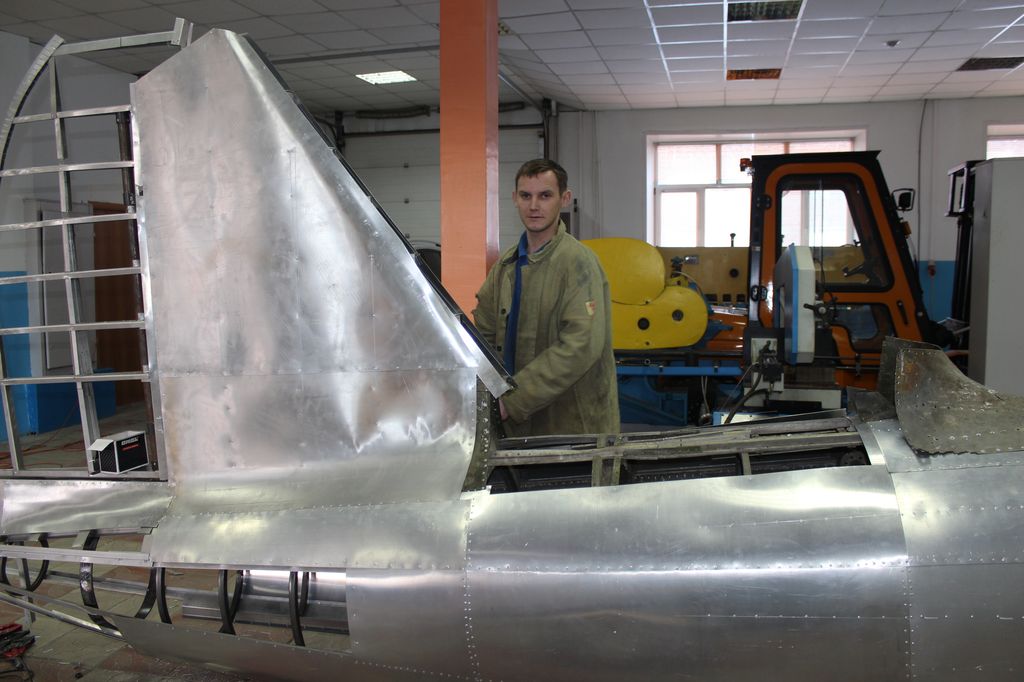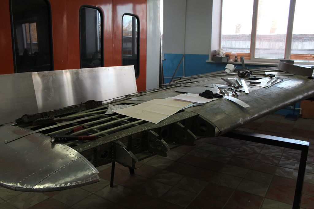 Сейчас специалисты УПК «Машиностроитель» и студенты колледжа заканчивают сборку поврежденной обшивки крыла. Старые, поврежденные элементы, которые невозможно было выправить, выстучать, повторно заклепать, были заново сделаны и установлены. Параллельно делаются чертежи и шаблоны для постройки нового крыла. Аналогичные работы были проведены и по восстановлению задней части фюзеляжа. Старые, пришедшие в негодность, элементы обшивки были полностью переделаны. Теперь основной работой будет воссоздание элементов хвостовой части самолета.